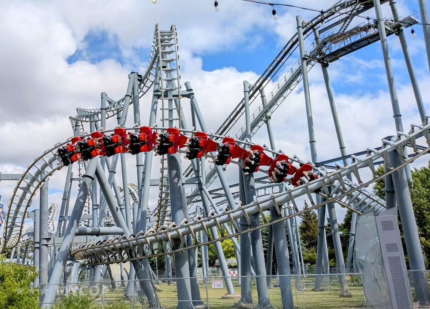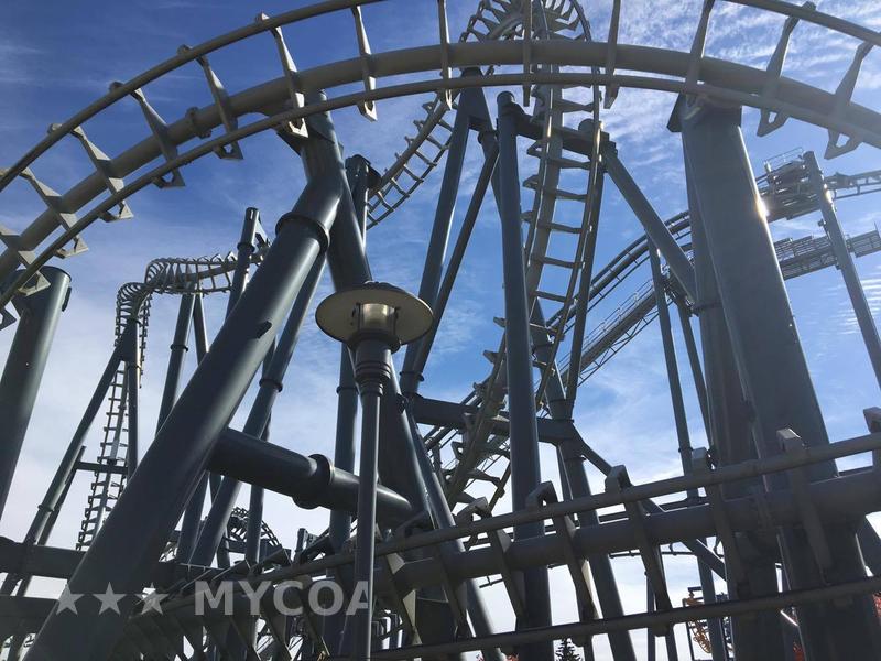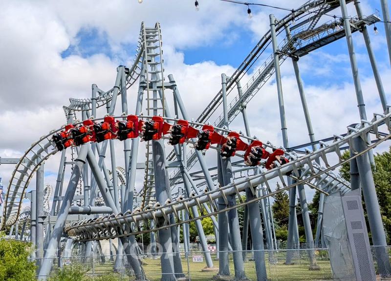 "L’étron du Canada. Le pire SLC de ma vie. J’ai découvert un nouveau type de baffe! On se fait secouer de gauche à droite, les jambes aussi (j’ai jamais vu ça, un slc qui fait mal aux hanches), on mange les habituelles baffes, mention spéciale à l’entrée du double roll, et on encaisse des vibrations incessantes. Le train est tellement branlant que le layout passe plus lentement, c’est dire à quel point ce truc est mal fichu. Bonus: même le virage entre les freins finaux et la gare distribue une claque, du jamais vu !!! C’est avec douleur que j’ajoute ce colombin à mon top, jurant de ne jamais reposer mes fesses dessus."